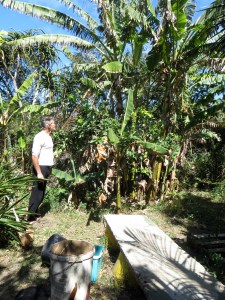 It opened my mind to the untapped potential we have around us. It’s just a matter of thinking about waste matter which one would rather flush away and never think about again! It’s really about thinking back to where all life began. The source of it all. Life on Earth began with water and Algae. All life grew out of that great green bog. David showed me the biodigester he has at the local and only food shop in Morgan Bay. Waste from both the toilet and organic waste from the kitchen goes into the biodigester outside. The dung from Cattle is an excellent additive. (Imagine if the effluent from those factory farms could be utilized this way… although I would rather they didn’t exist.) The biodigester creates liquid waste which through its processes, becomes clean water and algae- which goes into the vegetable garden growing abundantly around it. The gas from the biodigester is used to cook the vegetables grown in the garden.