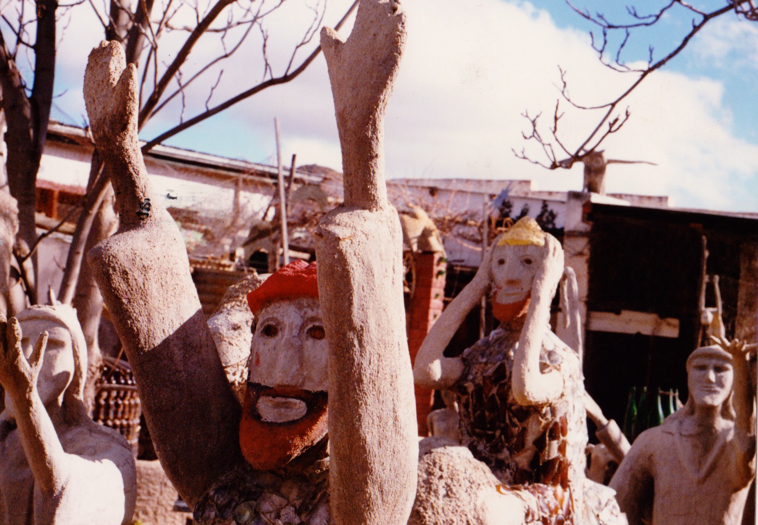 Hi Kate, thanks for your response to my poem. I would like to mention that Helena Martins did not think of leaving the place as a museum. I don’t think she had the self-confidence to do that. After her death, no will was found. However this is very controversial as she had asked her worker, Koos Malgas to deliver a letter to the local Dominee (Dutch Reformed church minister.) Koos was illiterate and respectfully did he investigate what it said. He faithfully delivered it. The dominee never revealed the contents of the letter, although permission was granted for Koos to have her radio. So nobody will ever know- (although Koos’s grandchildren have since come to the conclusion that the letter may possibly have given rights to Koos for the property and one of his grandsons once protested this by breaking in and damaging a sculpture. However nothing could be proved and under the group areas act, of the apartheid years, it is unlikely they would have been able to claim the property even if she had left it to them.) The extremely conservative sentiment of the local council was that the place was bewitched and evil and they considered bulldozing it. However, luckily there were some educated and worldly people who managed to make a good case for saving the place. It fell naturally into government property without the will. After much rallying it was declared a museum and a national monument. The Owl House has now ironically put Nieu Bethesda on the map and brings tourists and a source of income to the town. Koos Malgas’s grandchildren have done well out of reproducing sculptures to sell to tourists. They had the best knowledge of how to do this, although others have learned too. I would like to mention though, that Koos himself once told me that Helen had asked him to promise never to make reproductions of the sculptures outside of the owlhouse.