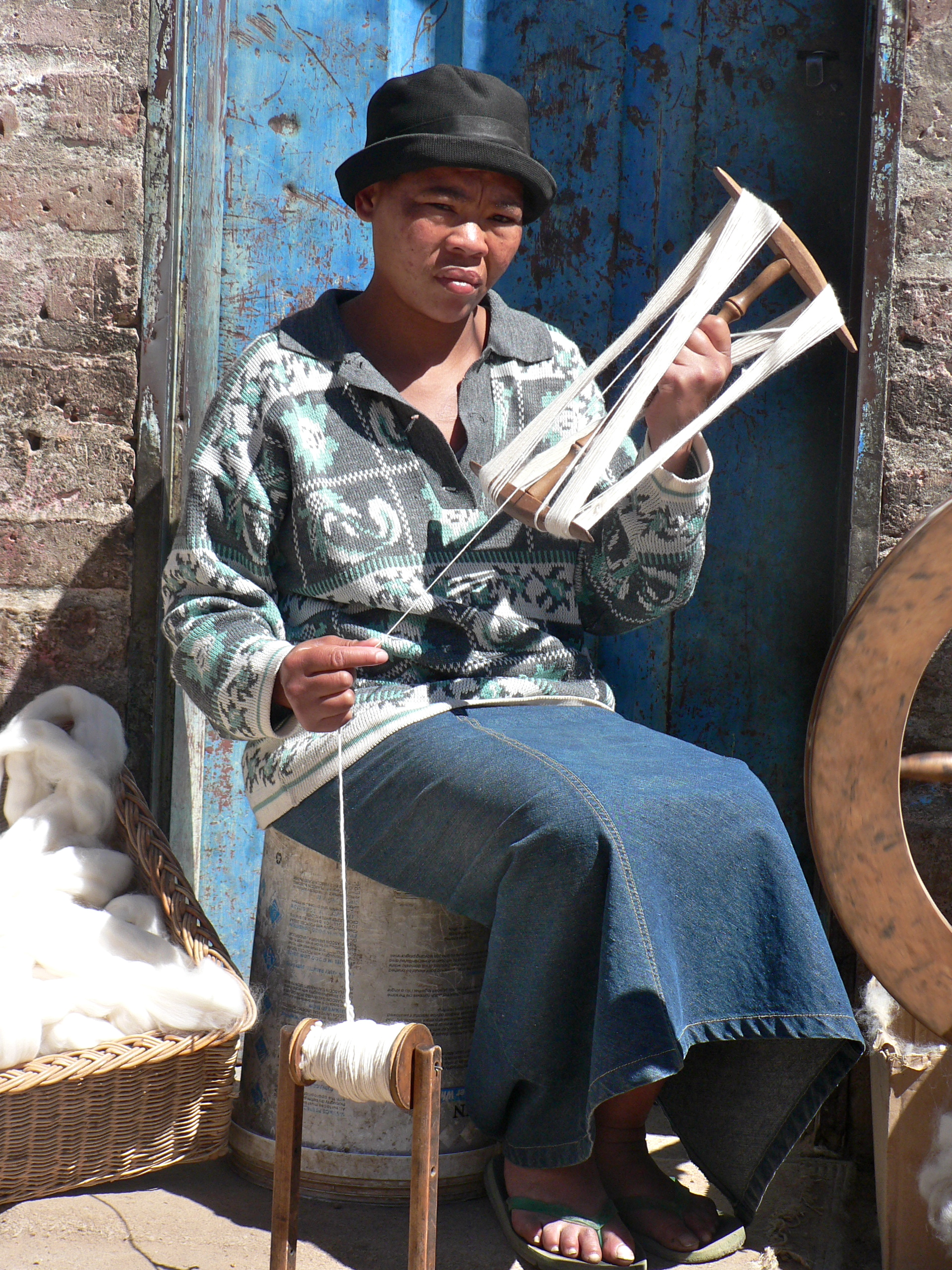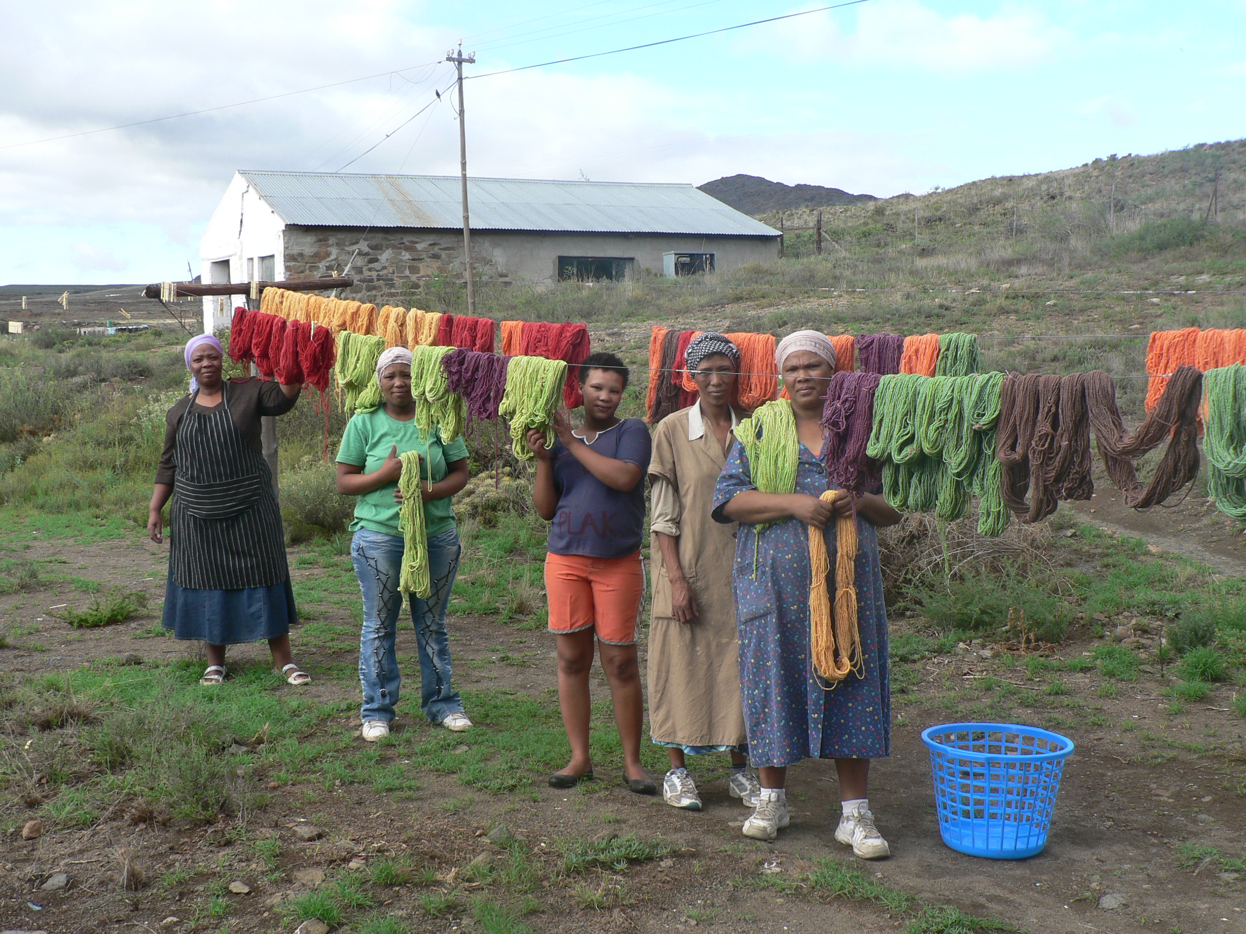 Home industry is one of the only ways for women in the Nieu Bethesda township to bring in a few pennies.Karoo Moon Wool products employ women from the township of Nieu Bethesda to spin and dye wool and knit jerseys.Wool is hung out to dry after being spun and washed at Weltevreden a nearby farm. Snowy fields match the wool.