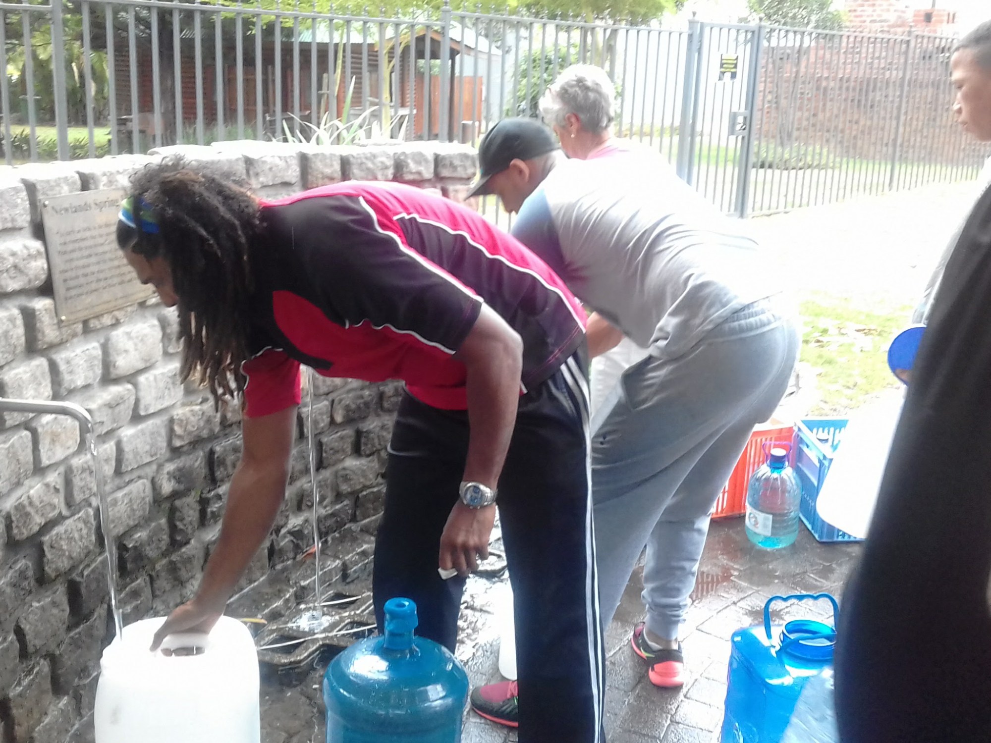 It creates an unspoken sense of community. This is life in the age of Climate Change. When we collect our own water from the spring we are taking our survival seriously, independently of the system. No matter who we are and what we believe taking water from the source of the earth and that is precious. We are very grateful that we can. Even in the city. No wonder she is called the Mother city. We are very grateful for our mountain and her underground water. It is time to take a different approach to our resource management.