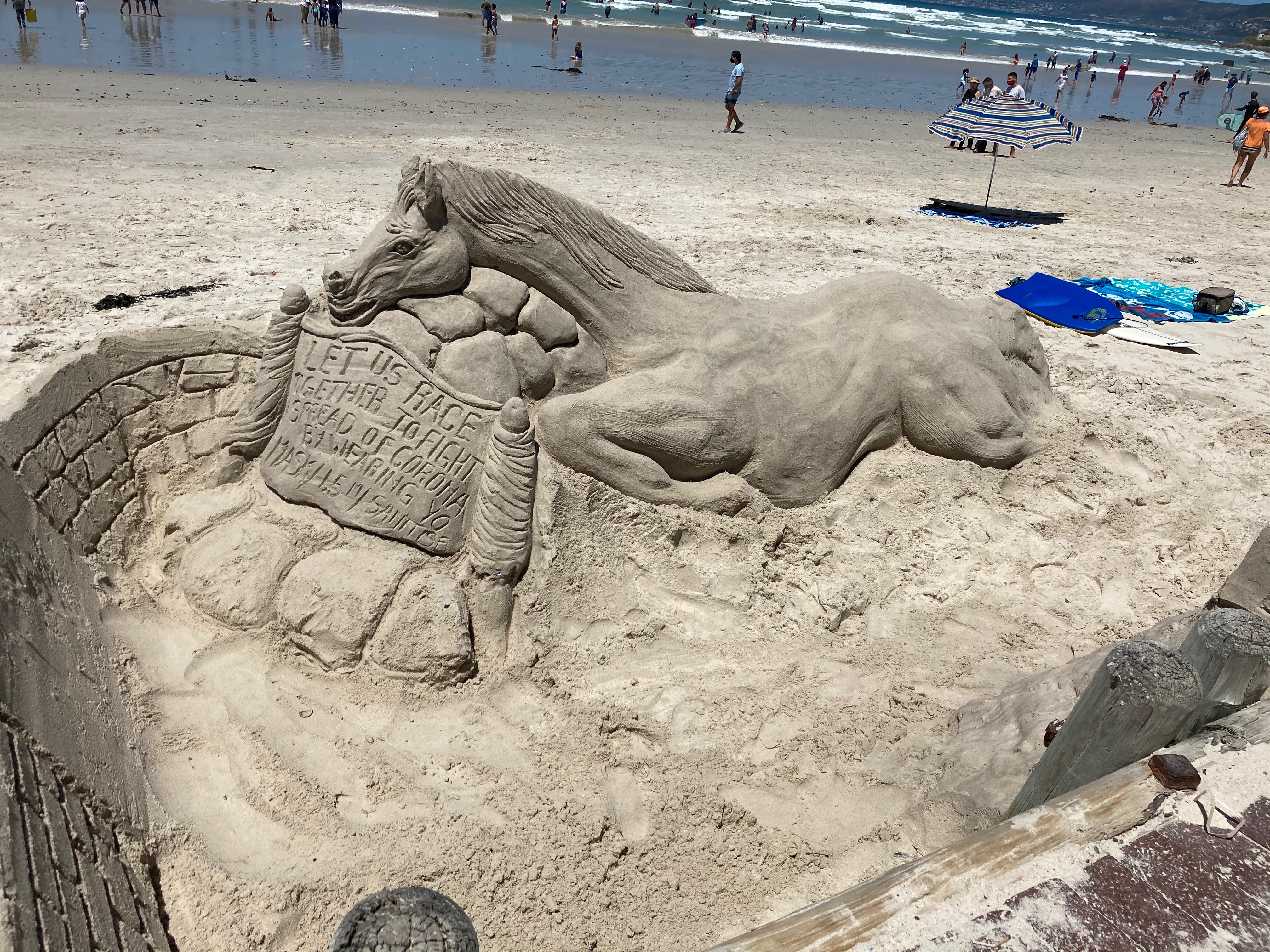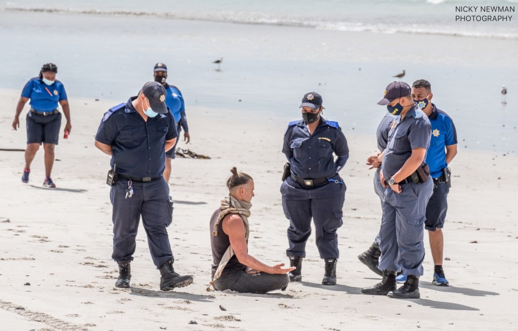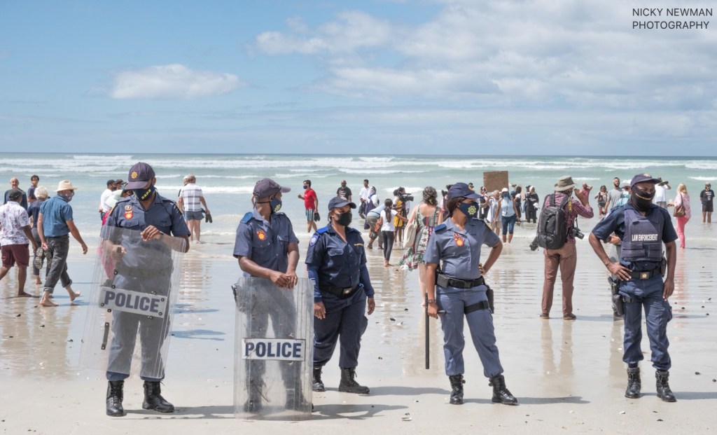Yesterday, there was a protest at the beach, a man started it by sitting in prayer, lotus –position on the sand, facing the waves. He had crossed the line. Nobody had been allowed on the beach for over a month at high season. This was Muizenberg, one of the most popular beaches in the country. Yet it had been empty, but for some police patrolling on quadbikes and horses, and a few happy seals, seagulls, jellyfish and the like. People had been allowed to watch from the pavement, longingly, wearing masks and trying to eat ice-creams in the heat of midsummer.