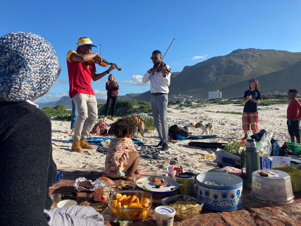 I was so inspired by my local community when I attended a birthday party for my friend Tumela’s two year old daughter. It was an outdoor picnic on the dunes, a bring and share celebration of music and love. Many who came were members of @muizenbergkitchen. This community of artists and artisans had started a communal food garden next to the railway track during lockdown as well as feeding scheme for the homeless and impoverished members of the community. The initiative, driven by volunteers had continued for a year during the toughest lockdown and is still going strong. The spontaneous gathering on the dunes with it’s classy musical surprises showed me that where there is an intention of love and community, there is magic and that is the best cure for depression. Music, sharing and love come together when there is no jostling for power or fear of limitations. One has to be humble. Perhaps all this is happening to us to make us humble.