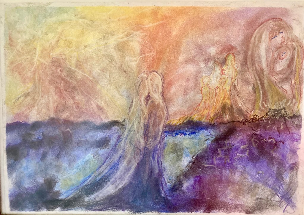An artwork I created at the time of the Japanese Tsunami chalk pastel “Community in a Time of Crisis.”